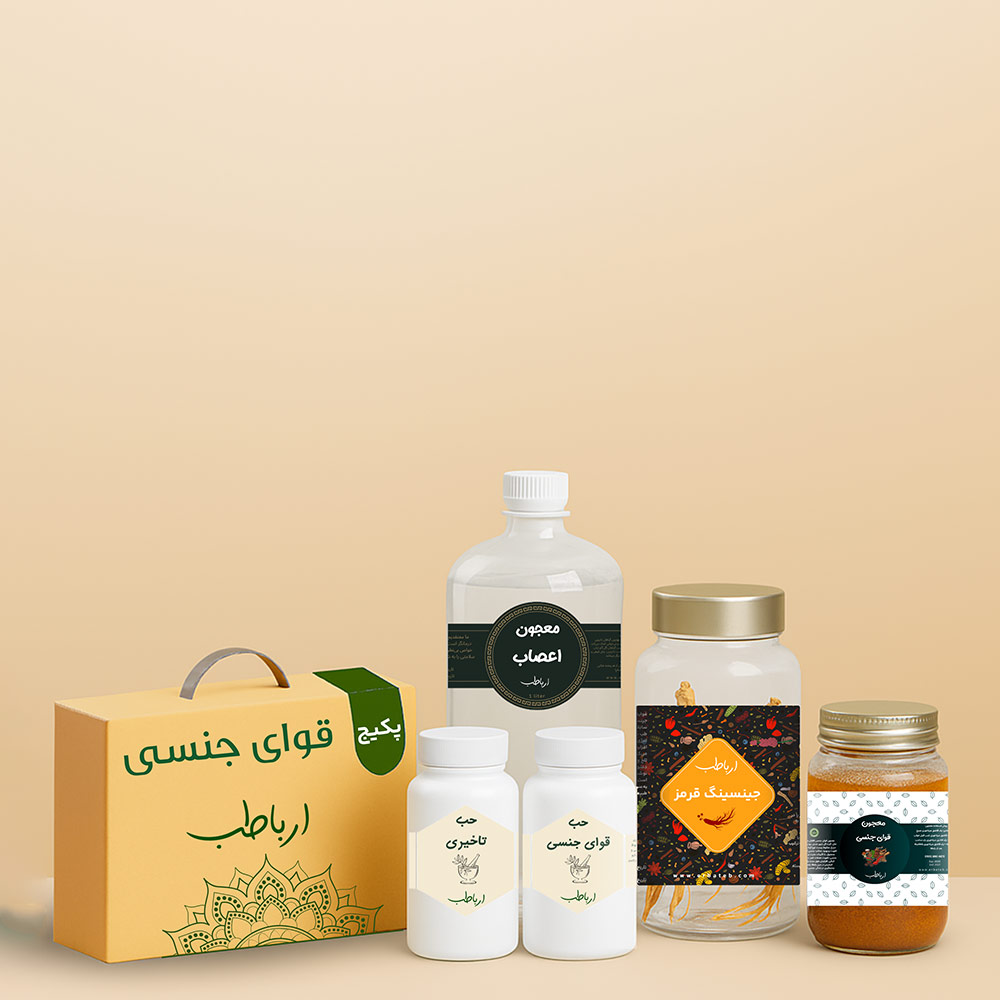 پکیج گیاهی تقویت قوای جنسی ارباطب ترکیبی از محصولات طبیعی و علمی فرموله شده است که با هدف بهبود عملکرد جنسی،  رفع مشکلات نعوظ، کنترل زود انزالی و افزایش میل جنسی در آقایان طراحی شده است.این مجموعه شامل حب گیاهی تقویت قوای جنسی،حب گیاهی تاخیری،جینسینگ قرمز، معجون قوای جنسی و عرق ترکیبی معجون اعصاب است که با هم افزایی اثراتشان،ظرفیت جسمی و روانی مردان را برای تجربه جنسی بهتر ارتقاع می‌دهد.